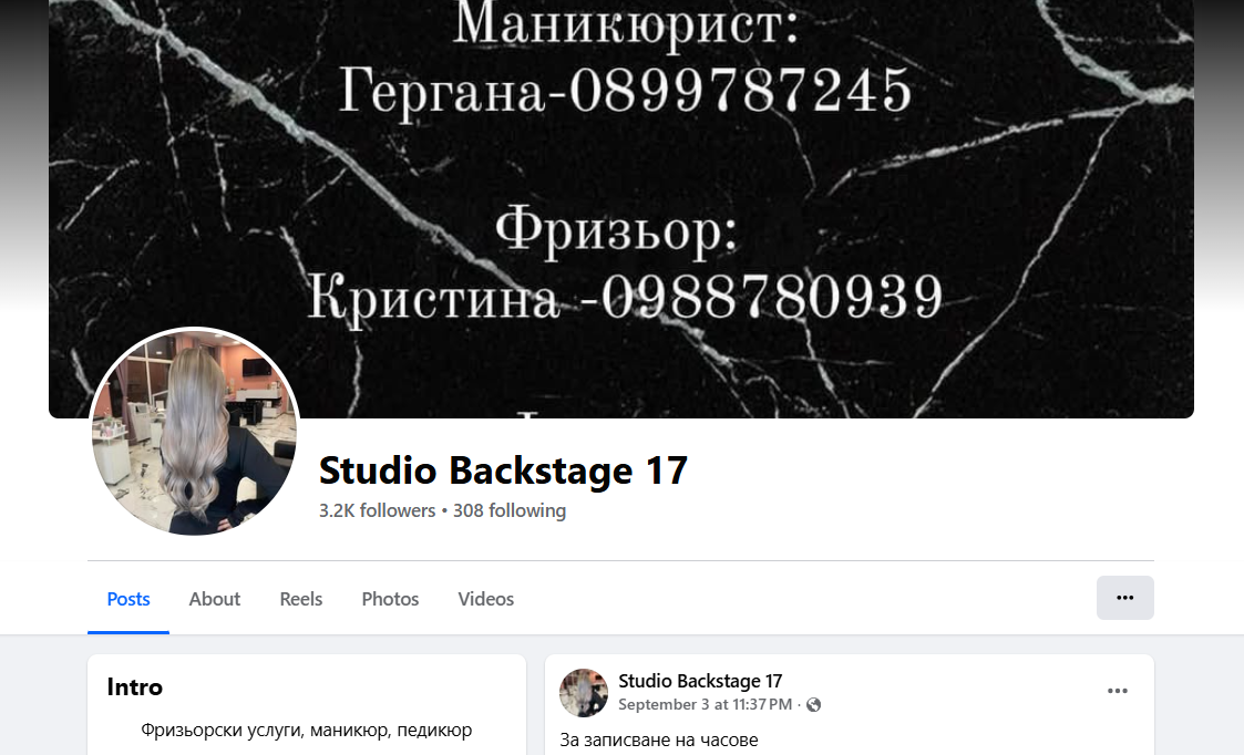 Studio Backstage 17 във Велико Търново е модерно студио за красота, специализирано в предлагането на професионални услуги по маникюр и фризьорство. Разположено на удобна локация в централната част на града – ул. Чумерна 34, салонът съчетава уютна атмосфера, индивидуално отношение и високо качество на обслужване. Всеки клиент може да разчита на внимание към детайла, стил и прецизност при всяка процедура, независимо дали става дума за освежаване на визията или цялостна промяна.